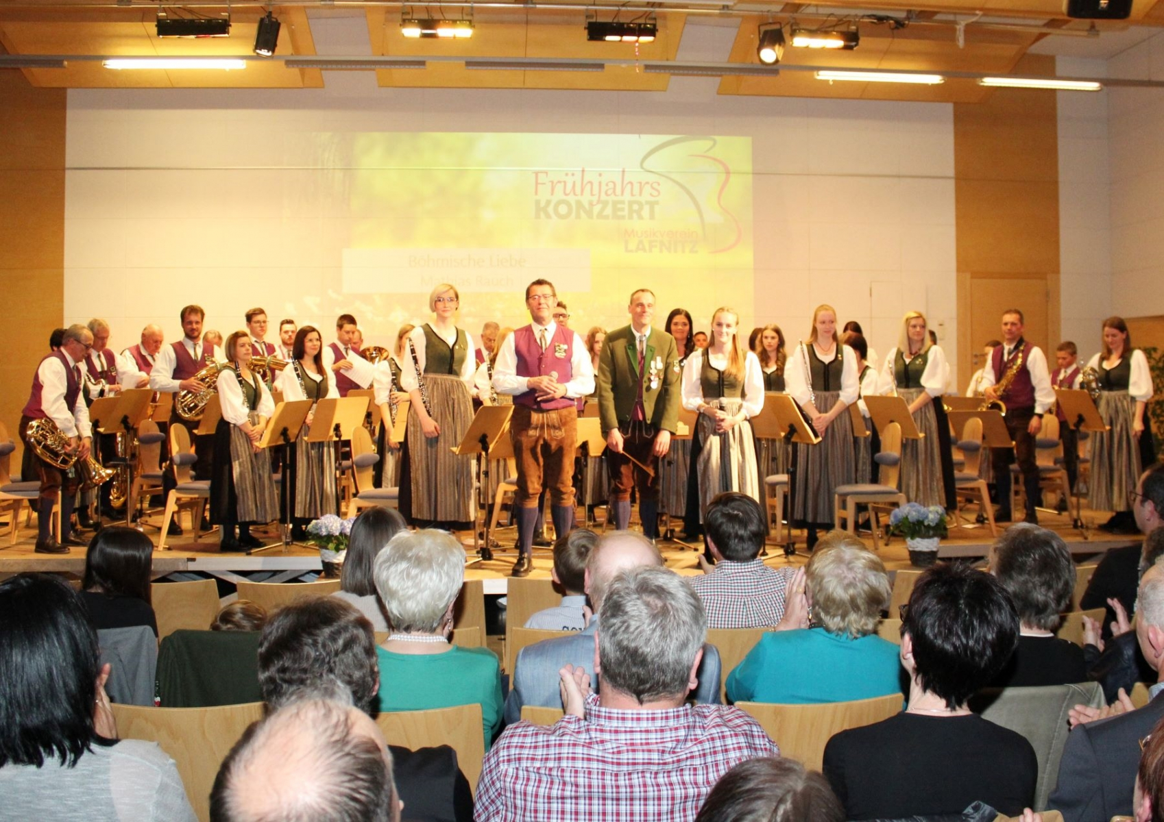Kapellmeister Martin Schuch hat mit den Musikerinnen und Musikern ein abwechslungsreiches Programm einstudiert. Zu den musikalischen Highlights des Abends zählten jedenfalls „To A Special One“ von Fritz Neuböck, die Filmmusik zu „The Greatest Showman“ und der weltberühmte Hit „Music“ von John Miles. Daneben durfte das Konzertpublikum auch Viktoria Sommer und Herbert Krug als Gesangssolisten bei der Polka „Böhmische Liebe“ erleben. Ganz besondere Momente bereiteten der „Mährische Tanz“ unter der Leitung von Ehrenkapellmeister Gerwald Pichler und „Unter dem Doppeladler“ unter der Leitung von Ehrenkapellmeister Hermann Wilfinger.